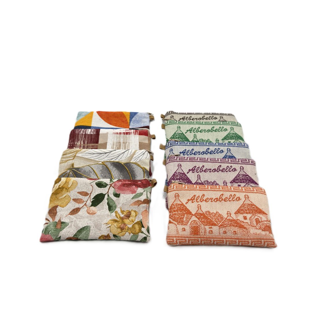 I nostri borsellini rappresentano l’accessorio perfetto per conservare piccoli oggetti e grandi memorie. Realizzati con tessuti pregiati e decorazioni esclusive, sono ideali come pensiero per ogni occasione. Chiusure sicure, fodere interne di qualità, dimensioni studiate per praticità d’uso. Personalizzabili con vedute, monumenti, pattern tradizionali. Un prodotto dal forte appeal emotivo, perfetto per il mercato turistico e del regalo.