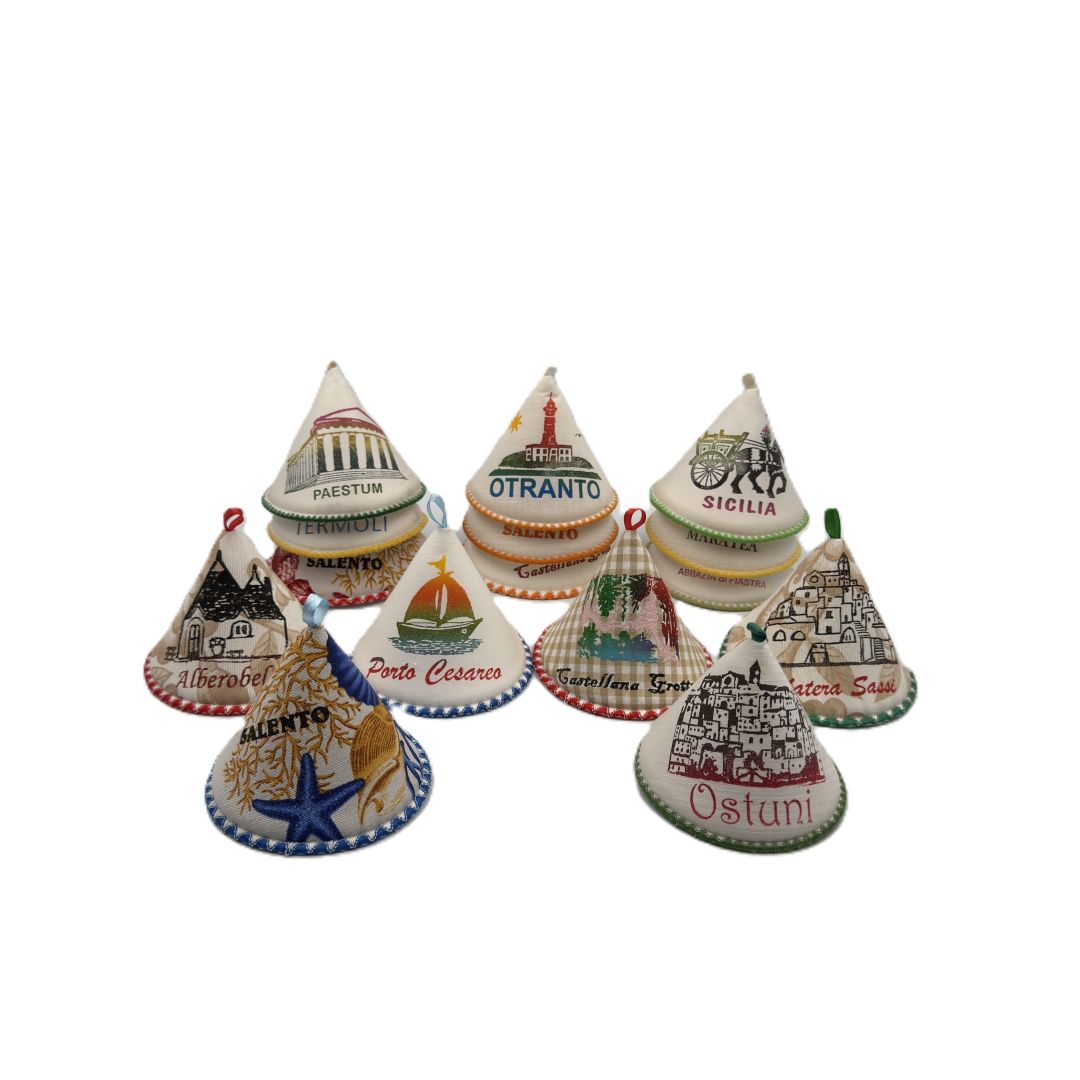 Grembiuli realizzati per durare nel tempo, con tessuti resistenti alle macchie e ai lavaggi frequenti. Taglio ergonomico, cuciture rinforzate, tasche funzionali. Le personalizzazioni spaziano da ricette tradizionali a vedute panoramiche, da slogan divertenti a loghi aziendali. Particolarmente apprezzati da cooking class, ristoranti tipici, agriturismi. Un prodotto che trasforma la cucina in un momento di orgoglio territoriale.
